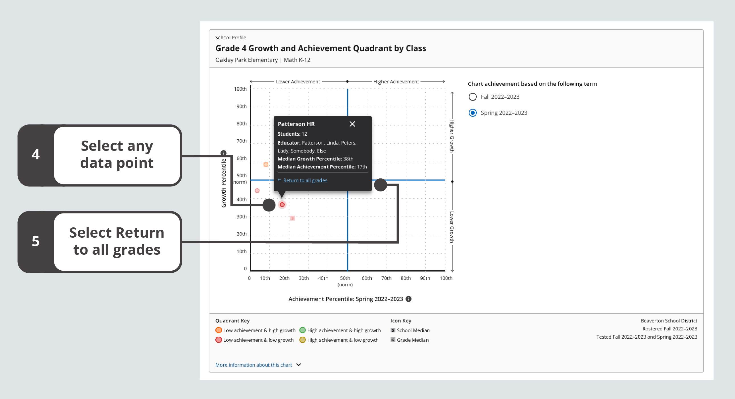 To return to all grades, select any of the data points or medians on the Growth and Achievement Quadrant.